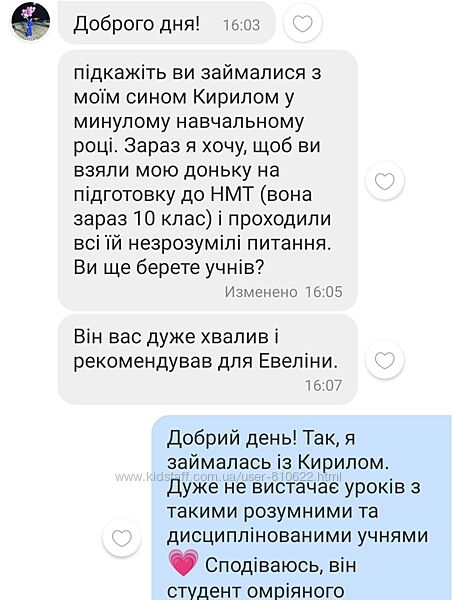 Пишіть у Viber, Telegram 0967330246. Маю досвід, знання та натхнення, з радістю попрацюю з Вашою дитиною.