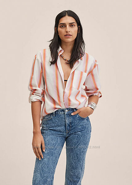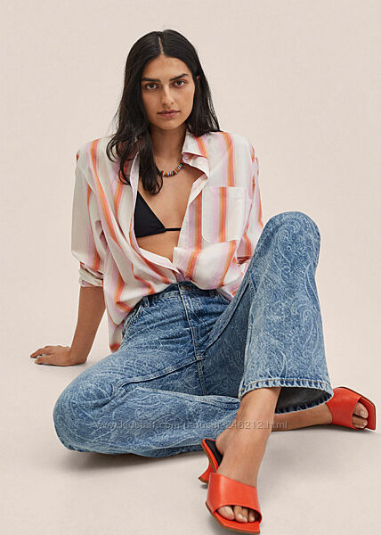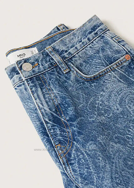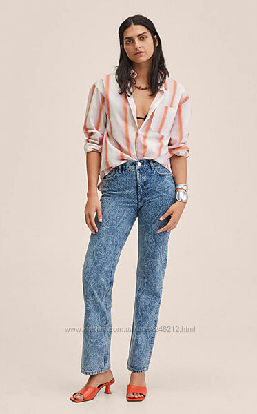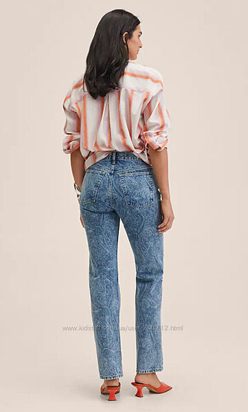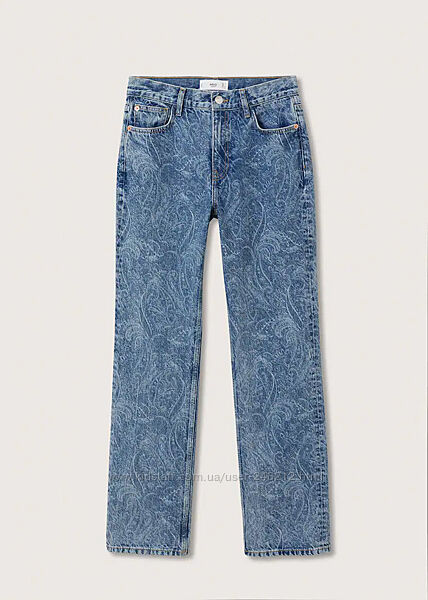 Прямі джинси із середньою посадкою від MANGO стануть окрасою вашого джинсового гардеробу.Вони виготовлені з переробленої сумішевої бавовняної тканини з принтом пейслі, прямим та подовженим фасоном, середньою талією, петлями, 5 кишенями, застібкою на блискавку та один гудзик.
