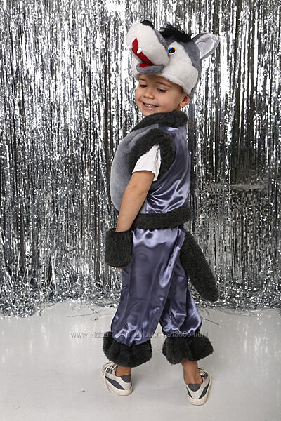 Яскравий дитячий карнавальний костюм "Вовк" для дитячих різних свят, заходів та колективних виступів. У цьому костюмі Ваша дитина виглядатиме яскраво, стильно, святково, вирізняючись серед своїх ровесників.Використовувані матеріали: штучне хутро, атлас.
