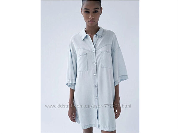 Подробное описание: Модное летнее платье рубашка оверсайз, с карманами, от Zara. М