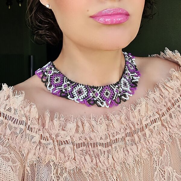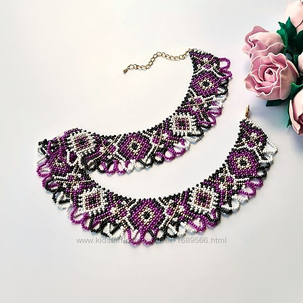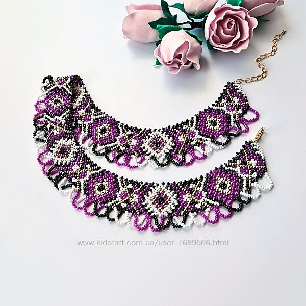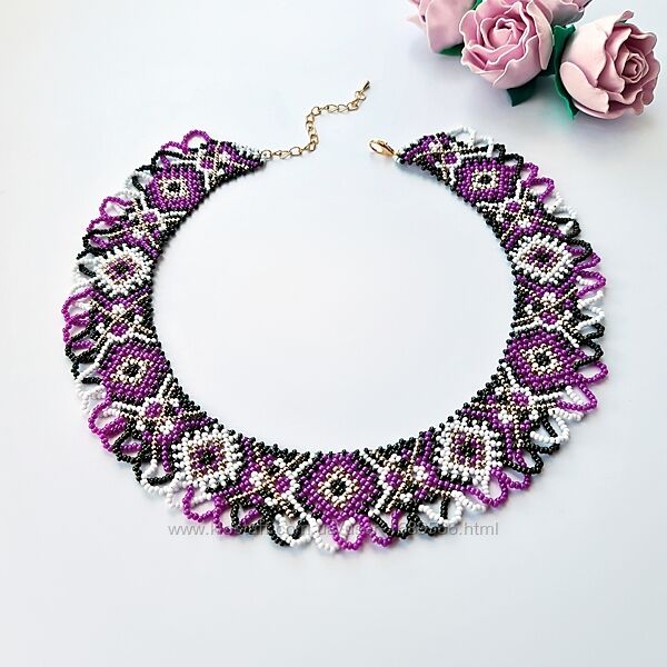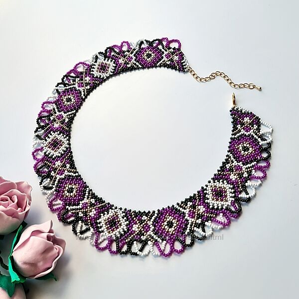Ширина 3,5 см, довжина 39-47 см, вага 37 г. Матеріал: чеський бісер Preciosa