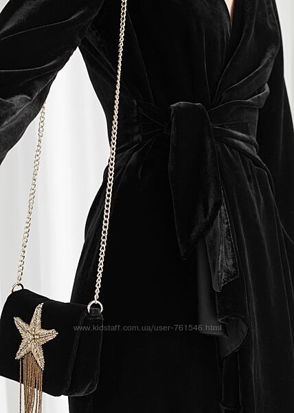 нова, вказаний 38р, останні колекції, ціна на сайті 120дол!Що може бути привабливіше чорного оксамитового міні в прохолодну святкову ніч? Глибокий V-подібний виріз із довгими рукавами-дзвонами та зібраний силует із вузлом на талії. Поєднайте це з улюбленими туфлями на підборах, прикрашеним клатчем і парою сережок, щоб створити незабутній одяг.🪙якщо бажаєте здійснити покупку, можна оплатити одразу на карту приват, післяпла з предоплатою 100-150грн, або через замовлення по передній домовленості!