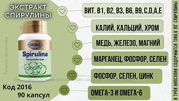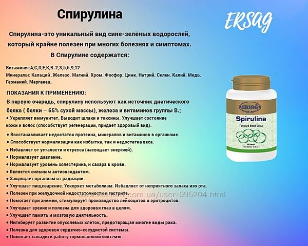 Эрсаг 2016 экстракт спирулины кожа волосы вес стресс давление сахар анемия