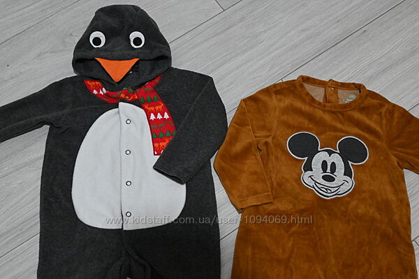 Два комбинезона, человечка, пижамы, 86 размерПингвин фирма F&F размер по этикетке 12-18 мес