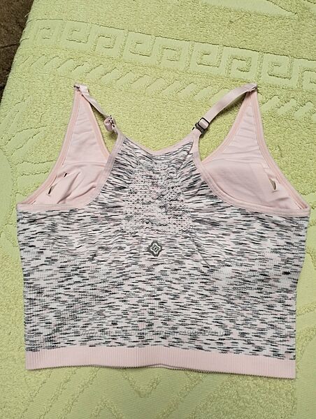 Новий (без бірки) рожевий спортивний топік із вкладишами (виймаються). Об´єм під грудьми - 27см. В подарунок - сірий топ (б/у, в гарному стані) на блискавці такого ж розміру.Другие объявления продавца