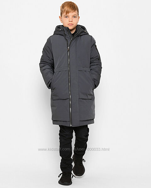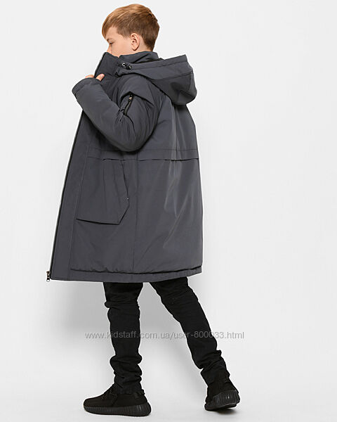Зимняя парка для мальчика X-WoyzЗимняя парка для мальчиков от 6 до 17 лет. Наполнитель синтепух, экологичный и водостойкий, выдерживает холод до -25 °C. Вместительный капюшон и талия с фиксацией на шнуре. Это позволяет оставлять тепло внутри куртки и регулировать ширину изделия. Манжеты для дополнительной защиты от холода. Три кармана – 2 боковых, 1 на рукаве. Застежка на две молнии с ветрозащитной планкой.