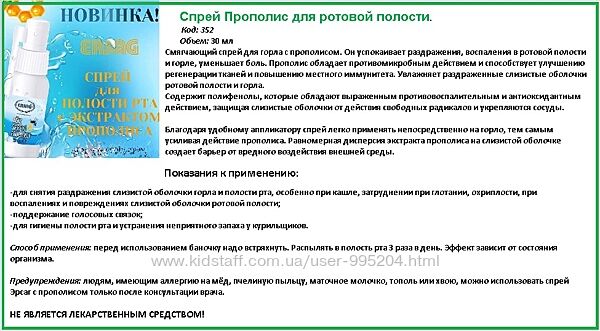 Подробное описание: Спрей для горла з прополісом голос кашель запах Ерсаг 352
