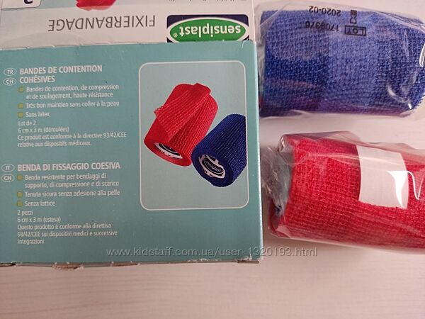 Подробное описание: Бинт фіксуючий когезионний 2 шт. синій і червоний Sensiplast Німеччина