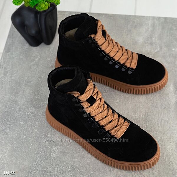 Подробное описание: Замшеві жіночі черевики з коричневими шнурками