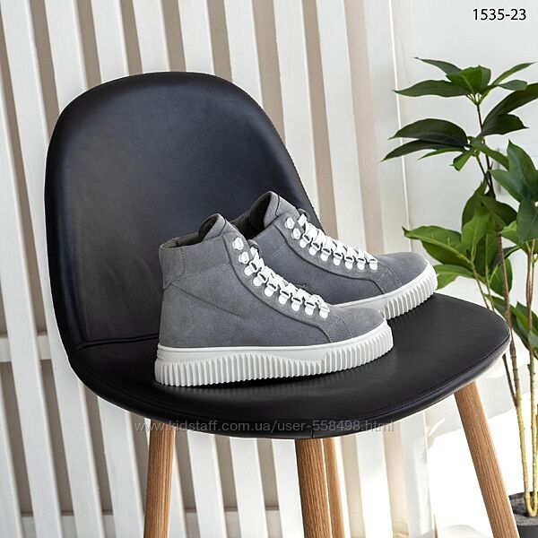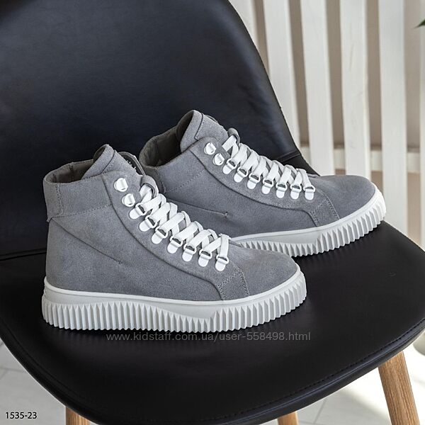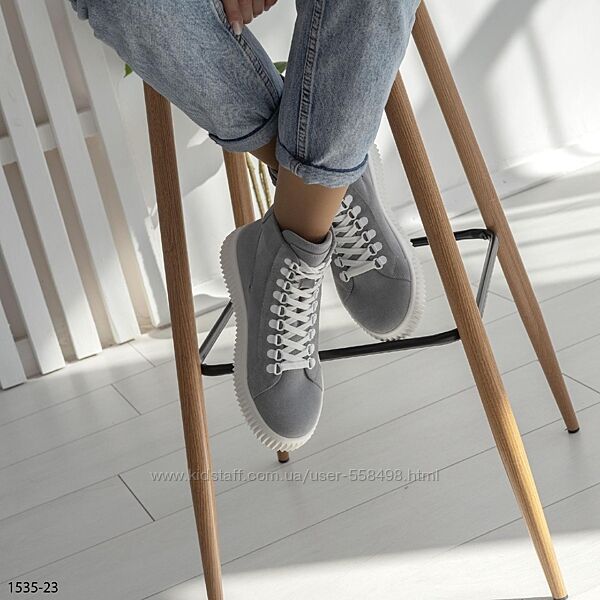 Подробное описание: Стальні жіночі замшеві сірі демісезонні черевики-кеди