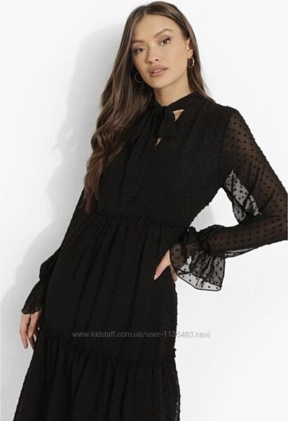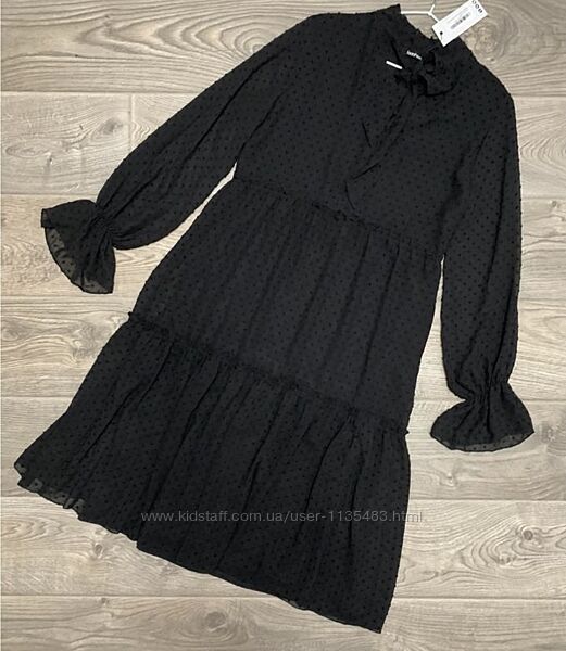Сукня шифонова Boohoo р. 12/40/12.Сукня на підкладці, красивий полупрозорий рукав, з бантом-краваткою, збоку застібається на змійку.