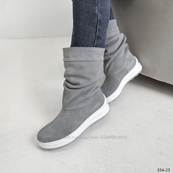 Подробное описание: Замшеві жіночі сірі зимові напівчобітки