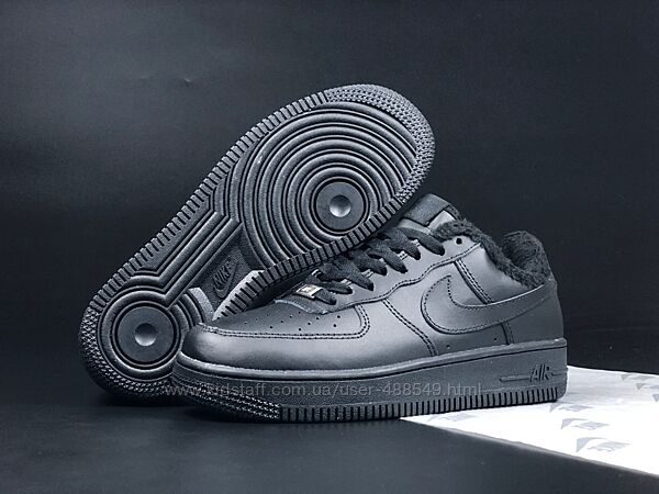 Подробное описание: Зимові чоловічі кросівки з хутром Nike Air Force, чорні, шкіра