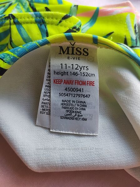 Подробное описание: Купальник для дівчинки топіком з яскравим візерунком Miss на ріст 146-152 с