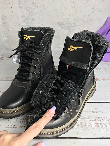 🎿 Якісні, стильні та теплі шкіряні зимові чоботи для хлопчиків підлітків ReebokВерх взуття виконан з якісної шкіри