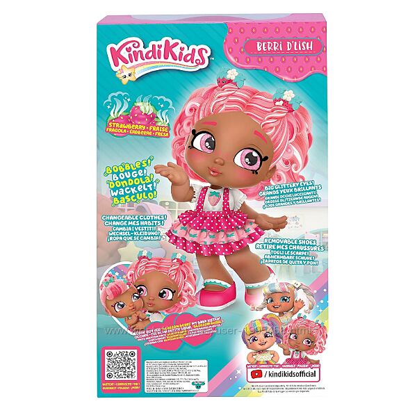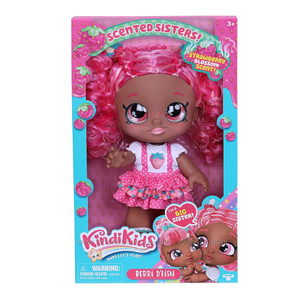 Kindi Kids Scented Sisters - наймиліші дошкільнята! Беррі Д´Ліш - чарівна маленька дівчинка, повна веселощів і ігор, з найніжнішим і чудовим ароматом квітів полуниці! Візьміть її до рук і побачите, як вона оживає! У неї великі блискучі очі, гарне полуничне волосся та чарівна головка, яка похитується при кожному русі. Беррі цікава і безстрашна, вона справжня заповзятлива дитина, особливо коли вигадує пустощі! Вона ягідно-пустотлива і іноді потрапляє у скрутне становище, але швидко рухається і може вирішити будь-яку проблему! У Беррі Д´Ліш є змінний одяг та змінне взуття! Вона ідеального розміру для маленьких ручок, з якою можна грати, і ідеально підходить для обіймів! У Беррі Д´Ліш є молодша сестра на ім´я Блоссом Беррі. Вони люблять бути разом і грати в ігри. Дівчаткам сподобається збирати всіх іграшкових ляльок Kindi Kids та їхніх маленьких братів та сестер. Їм не терпиться провести з вами чарівний день!Висота лялечки 25 см.