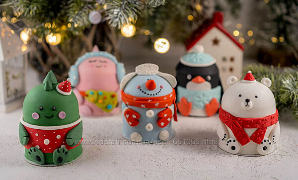 Тортики-фигурки из зефира: белый мишка, динозавр девочка, снеговик и пингвин