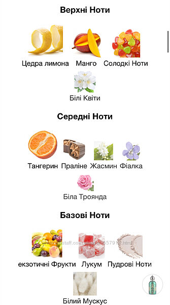 Нота серця: Білі квіти, Манго, Солодкі ноти, Цедра лимона