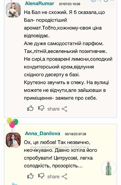 Яскравий, дзвінкий, задерикуватий, соковитий аромат. Дзвінкий лимончик з цукром на старті, потім присипається пудрою і поруч лежать шоколадні цукерки та квіти.