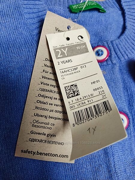 Нарядная кофточка Бенетон со всеми бирками, указано на 2 года, но думаю может быть с 1,5 года уже как раз. Замеры предоставлю!Состав: 60 хлопок, 30 нейлон и 10 шерсть