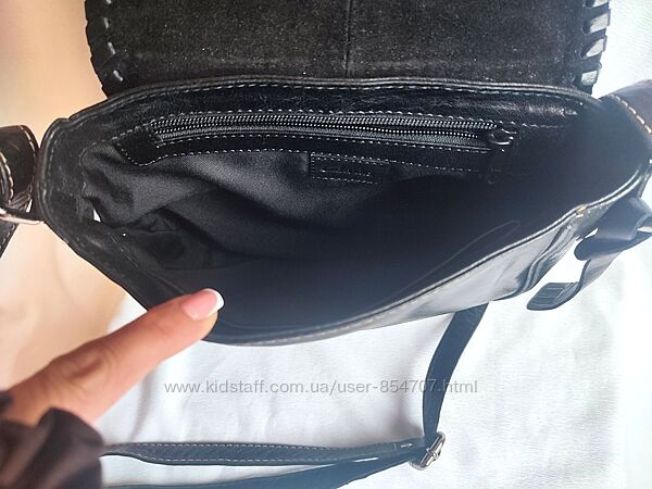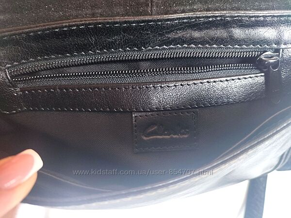Сумка черная кожаная кросс боди ClarksИзготовлена из качественной натуральной, мягкой кожи, с отделкой выделенной стройкой. На тыльной стороне карман на молнии. Внутри карманы для мелочей и карман на молнии. Клапан на магнитной кнопке, по краю кожаная оплётка.