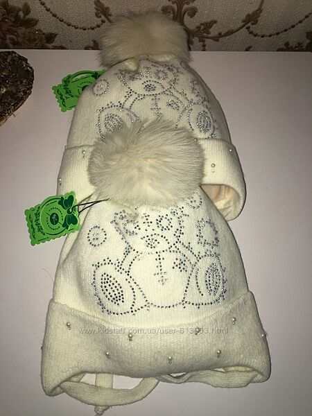 Неймовірні шапки розпродаж!!!! Останні 2 можна для двійнят кашемір утеплені ізософтом підкладка фліс помпон натуральний песець , підійде об‘єм голови 52-54-56, ідеальна посадка м‘якесенька не колеться, аплікація сваровськихціна на останніх 2 -50%