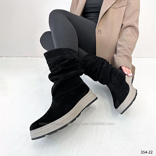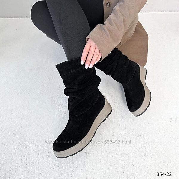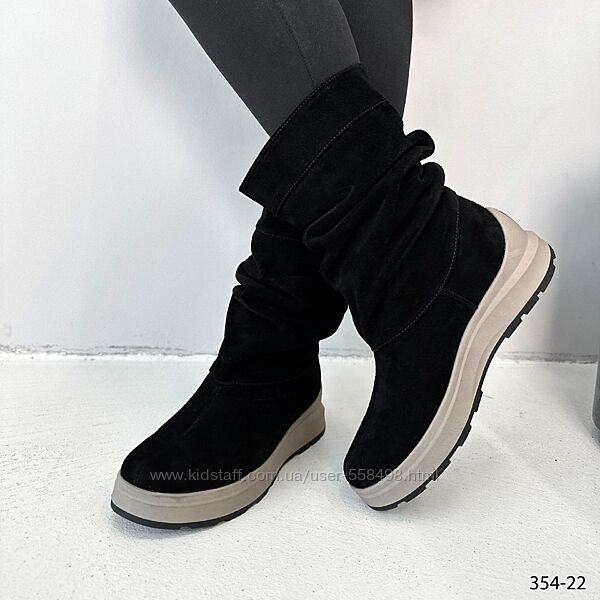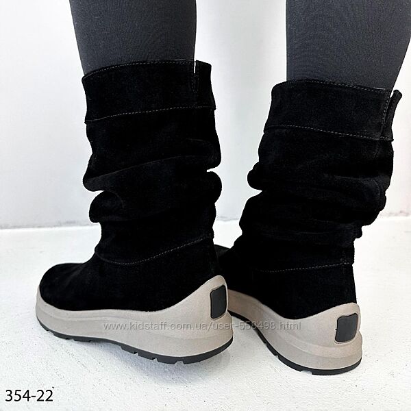 Наші жіночі чорні зимові замшеві чобітки - це втілення стилю та зручності. Натуральна замша додасть вам затишок, а з хутром усередині буде тепло.Розмірний ряд моделі: 36-40
