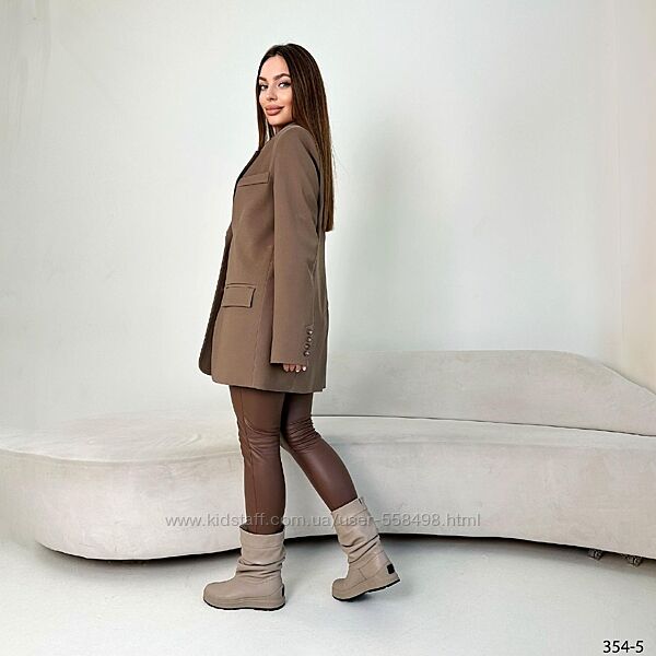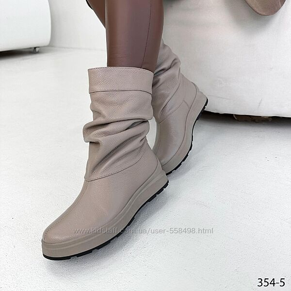 Подробное описание: Бежеві шкіряні зимові напівчобітки без підборів