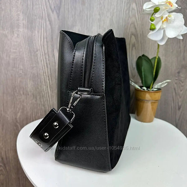 Матеріал: натуральна замша + якісна та щільна турецька екошкіра, без стороннього запаху; Довжина: 27 см; Ширина на основі: 11 см; Висота: 23 см; У комплекті йде 2 плечові ремені на карабінах (можна зняти за потреби) як на фото; Країна виробник: Туреччина Відмінна якість!