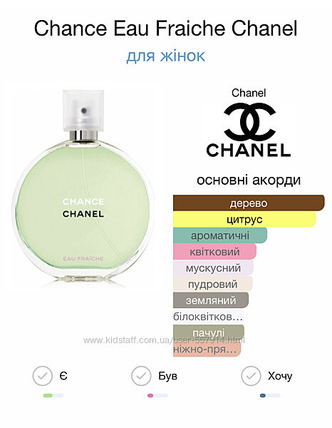 Chanel Chance Eau Fraiche Туалетна вода - 65 грн/1 млДинамічний, позитивний та неповторний аромат. Must-have.