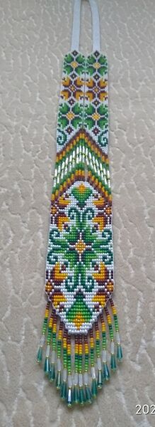 Пропоную Вам гердан "Роксолана" .Заворожуючий східний арнамент, зелений і жовтий кольри - елегантна прикраса на кожний день.