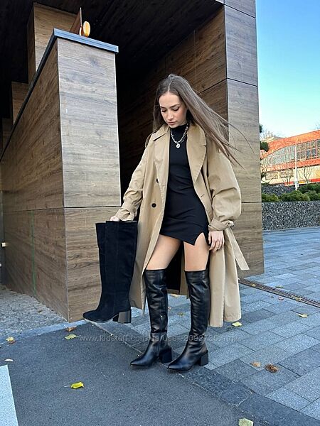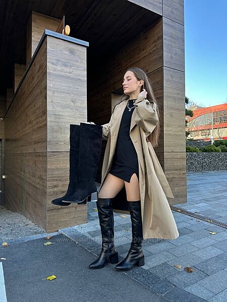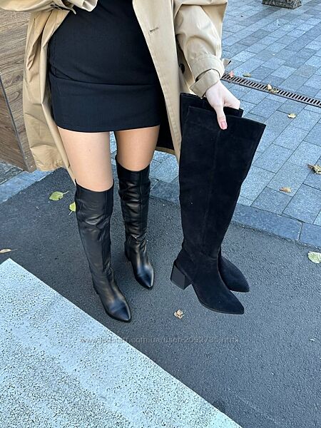 Подробное описание: Ботфорти жіночі замшеві та шкіряні чорні зима демі Артикул 8503