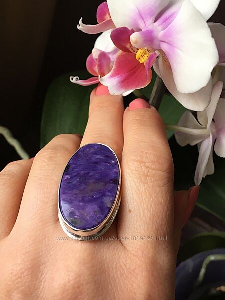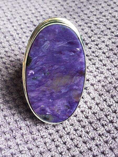 Серебряное кольцо с натуральным чароитом.Размер 18,3