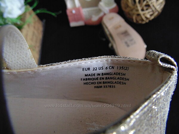 Золотисті туфельки H&M 22 размір, по устілці 14 см.