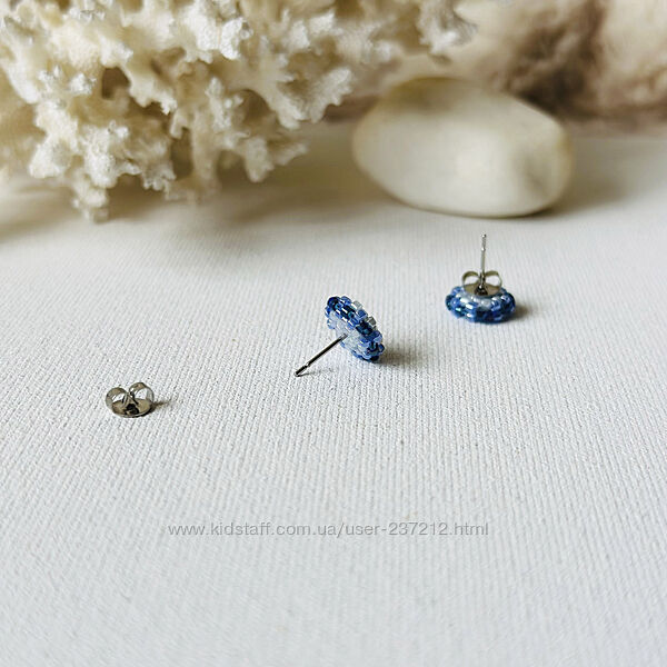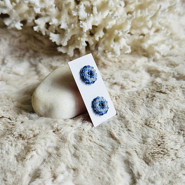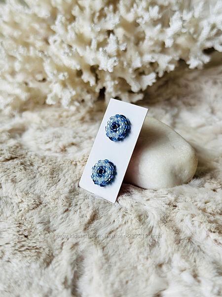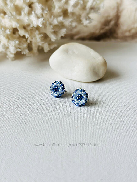 Подробное описание: Голубые серьги гвоздики из бисера, круглые бисерные серьги