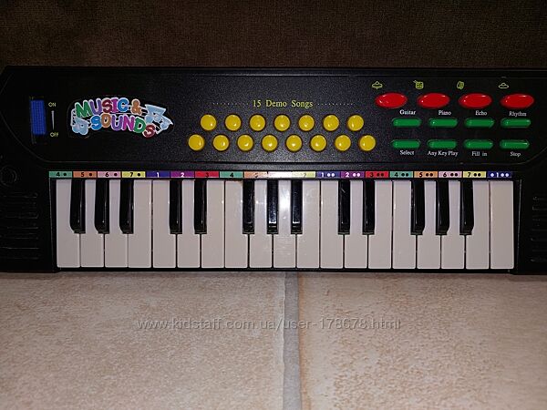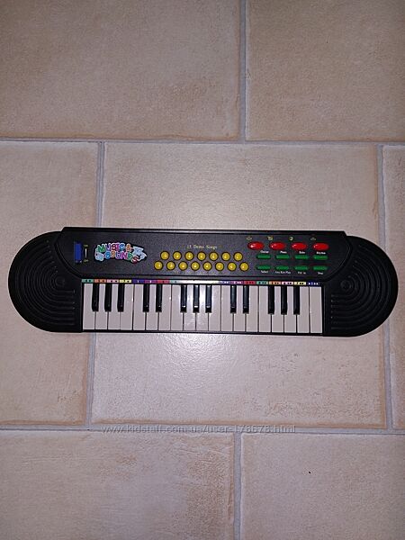 Качественный синтезатор для деток The toy company( Германия) имеет 19 клавиш, 15 демо-песен, 4 звука барабанов, 8 ритмов, автоматическое выключение, работает от 3 шт. батарейка пальчиковая в комплект не входит. Возраст от 3 лет. Любовь к музыке необходимо прививать ребенку с детства. В этом вам помогут детские музыкальные инструменты, которые прекрасно развивают слух, чувство ритма! Есть коробка, синтезатор в отличном состоянии.