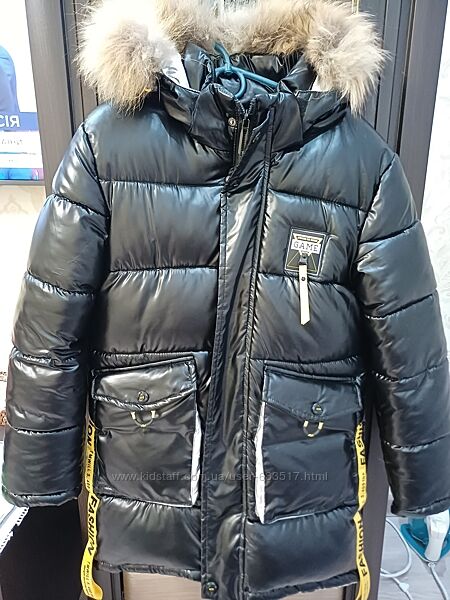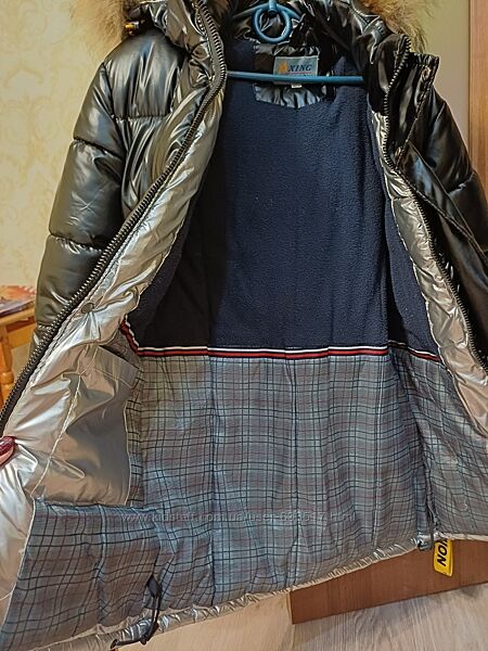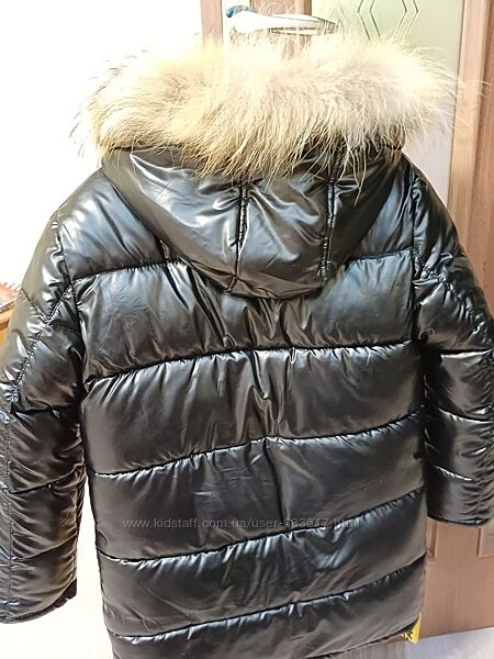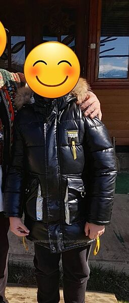 Бомбезна та дуже тепла куртка для хлопчика р. 146 В ІДЕАЛЬНОМУ СТАНІ (подовжена і може бути як пальто).Матеріал: лакована плащівка, утеплювач
