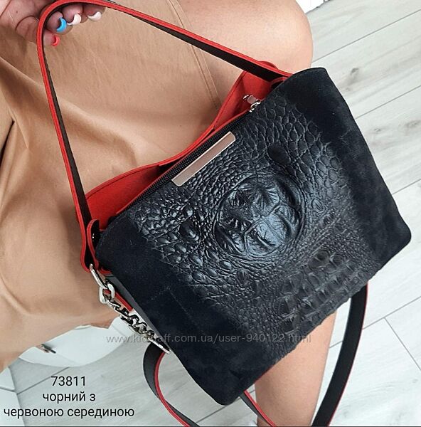 сумка через плечо женская замшевая сумочка хобо черная топоваяГарний клатч крос боді з тисненням РЕПТИЛІЯ на НАТУР. ЗАМШІ