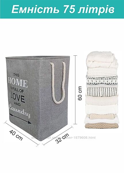 Подробное описание: Корзина Органайзер для белья, одежды, книг, игрушек - Серый 75 л