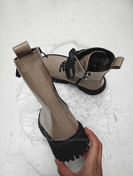 Подробное описание: Жіночі бежеві шкіряні зимові черевики на чорній підошві, натуральна шкіра