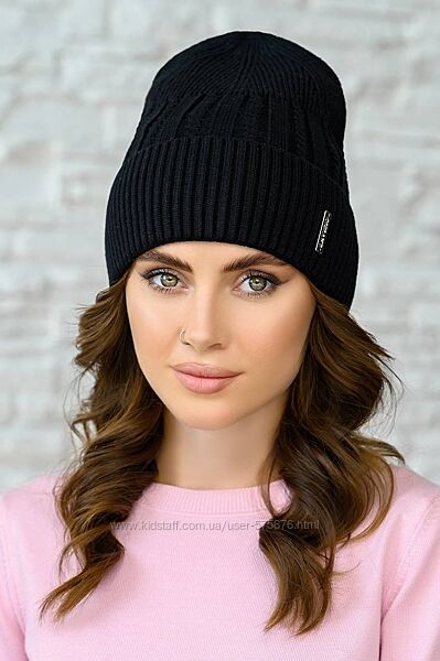В´язана шапка з закотом , виготовлена з м´якої, еластичної пряжі. Оригінальний дизайн цього аксесуара підійде як до спортивної куртки, так і до модного пальта.