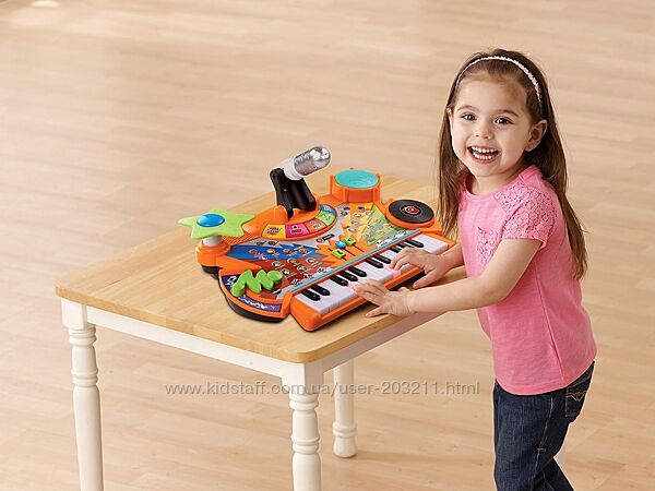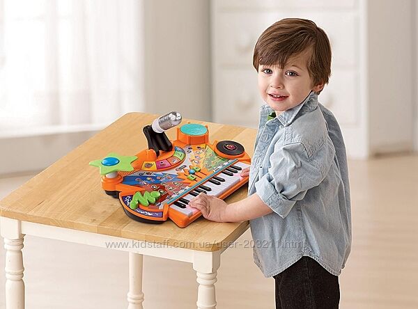 40+ пісень і звукових ефектів; дитяча клавіатура підсвічується, щоб навчити дітей наслідувати джаз, техно та рок-н-рол.