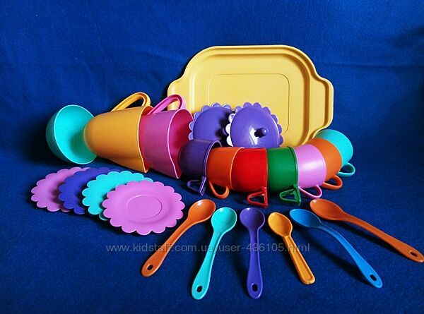 --Набір різнокольорового іграшкового посуду Технок в дуже хорошому стані.--Без деформацій, без сколів, тріщин. Де не де є поверхневі потертості на пластику від користування. Набір начисто вимитий мильним розчином.