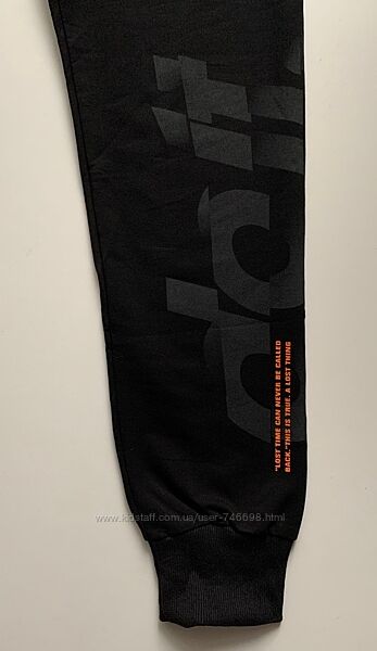 Нові надходження. Стильні спортивні штани для хлопців від відомої фірми GRACE Угорщина. Штани внизу на манжеті, пояс на широкій гумці зі шнурком, є кишені під блискавками. Колір чорний. Матеріал якості ЛЮКС, склад: 95% cotton, 5% lуcrа. Якість супер!При виборі розміру, орієнтуйтеся на заміри.