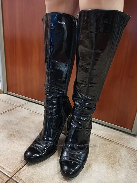 Сапоги женские еврозима. ТМ "Елit Monarch"Натуральная кожа. Лакированная. размер 39, каблук устойчивый 9см., цвет черный. Подойдет на полную икру.Другие объявления продавца