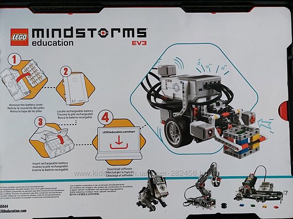Базовий набір LEGO 45544 Мікрокомп’ютер EV3 3 сервомотори (2 великих, 1 середній) Акумуляторна батарея та з’єднувальні шнури Зарядний пристрій в комплекті! Програмне забезпечення в комплекті 5 датчиків (гіроскопічний та ультразвуковий датчики, датчик світла/кольору і два датчика дотику)