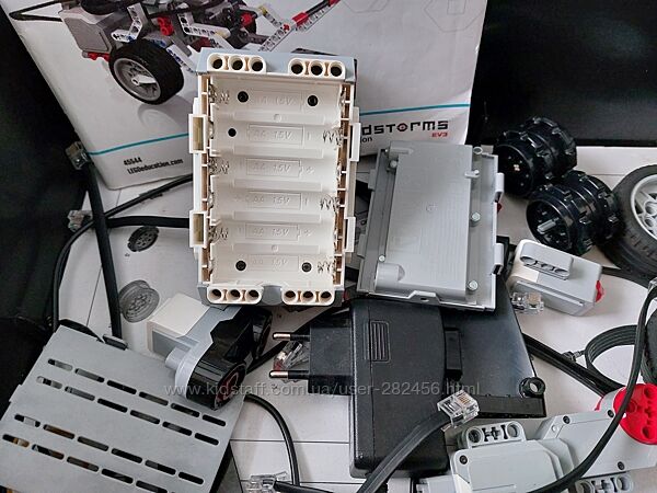 Набір Lego mindstorms. Вживаний, купували для проведення занять, деякий час користувалися, але недовго. Дуже крутий набір для підлітків, які вже мають базові навички робототехніки. З цим набором їх можна добре вдосконалити. Може працювати від 6 батарейок АА, чи від акумулятора (в комплекті).