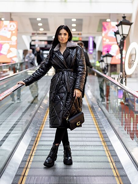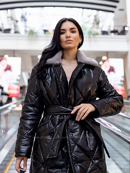 Зимове жіноче стьобане пальто з капюшоном