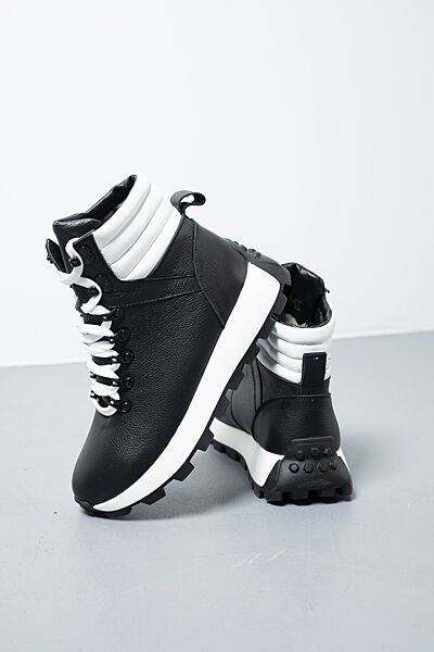 Подробное описание: Кросівки зимові жіночі високі чорно-білі шкіра натуральна