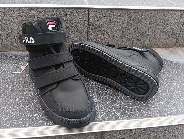Ботинки кожа Fila черные липучкиВерх – кожа натуральная, хорошего качества. Внутри утеплитель – шерсть набивная. Легкая подошва.